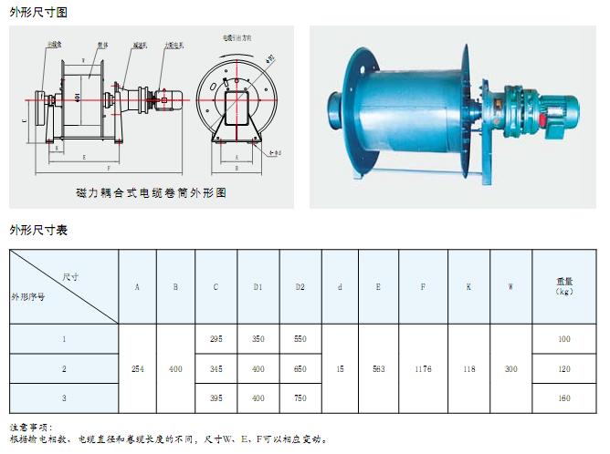 1、该系列电缆卷筒由Y系列电动机、针线摆轮减速机(或蜗轮蜗杆减速机)、永磁耦合器、集电滑环、卷筒组成。