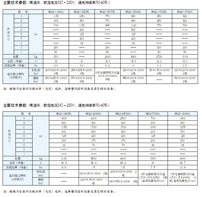 特点: 适用于吊运大钢锭和大型初轧坯。能在狭窄的吸附面积内产生较大的透磁度,无需根据吊件的变形或扭曲调节吸力,可在有一定间隙的情况下起吊钢材。对数根高低 参差不齐的钢材,也可产生强大磁力吸住,安全起吊。采用天平式的双层横梁,弯曲大的长钢材也可稳定地进行搬运作业。
