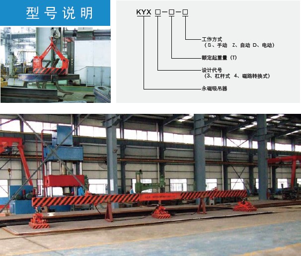 永磁吸吊器不需要电源,使用安全可靠,可单台使用,也可多台组合吊运大尺寸的整张钢板,适用于户内、户外作业,是一种无能耗的理想环保型吊具。