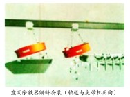 悬挂方式:悬挂安装方式分倾斜、水平两种,它们与除铁器安装在输料皮带上的工作位置有关。